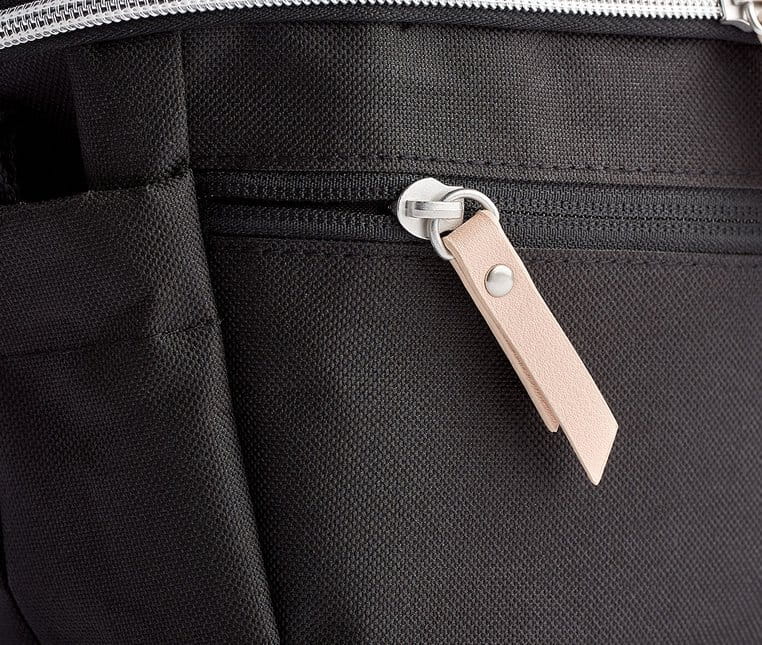 - wodoodporny i bardzo trwały materiał wierzchni w kolorze czarnym z jasnym suwakiem i uchwytami;
