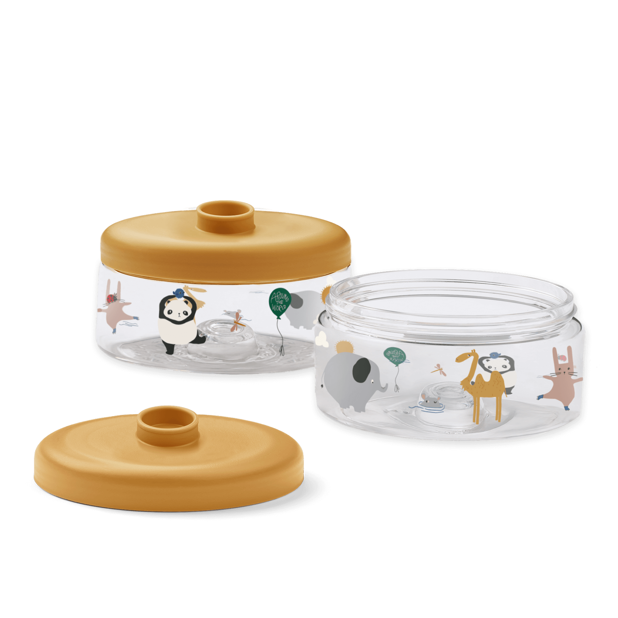 | Skład: | Słoik: 100% polipropylen, Uszczelka: 100% tritan, Pokrywka: 100% silikon |