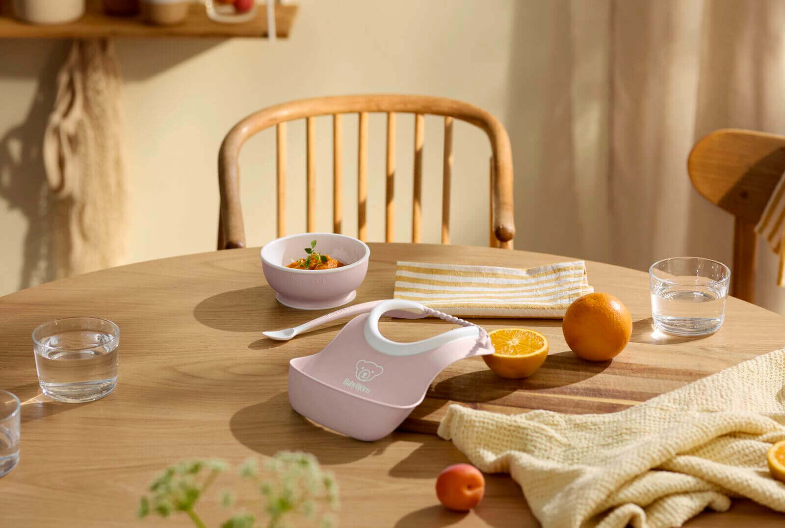 Zestaw jest idealny dla małych dzieci, które dopiero zaczynają smakować pokarmy stałe, ale są nadal karmione przez rodzica. Zawiera wszystko, co niezbędne do wprowadzenia dziecka do pokarmów stałych: solidną miskę, którą można łatwo trzymać w jednej ręce (dzięki czemu możesz karmić drugą), łyżkę do karmienia z długim uchwytem i wygodny śliniaczek, który pomoże złapać każdy bałagan.