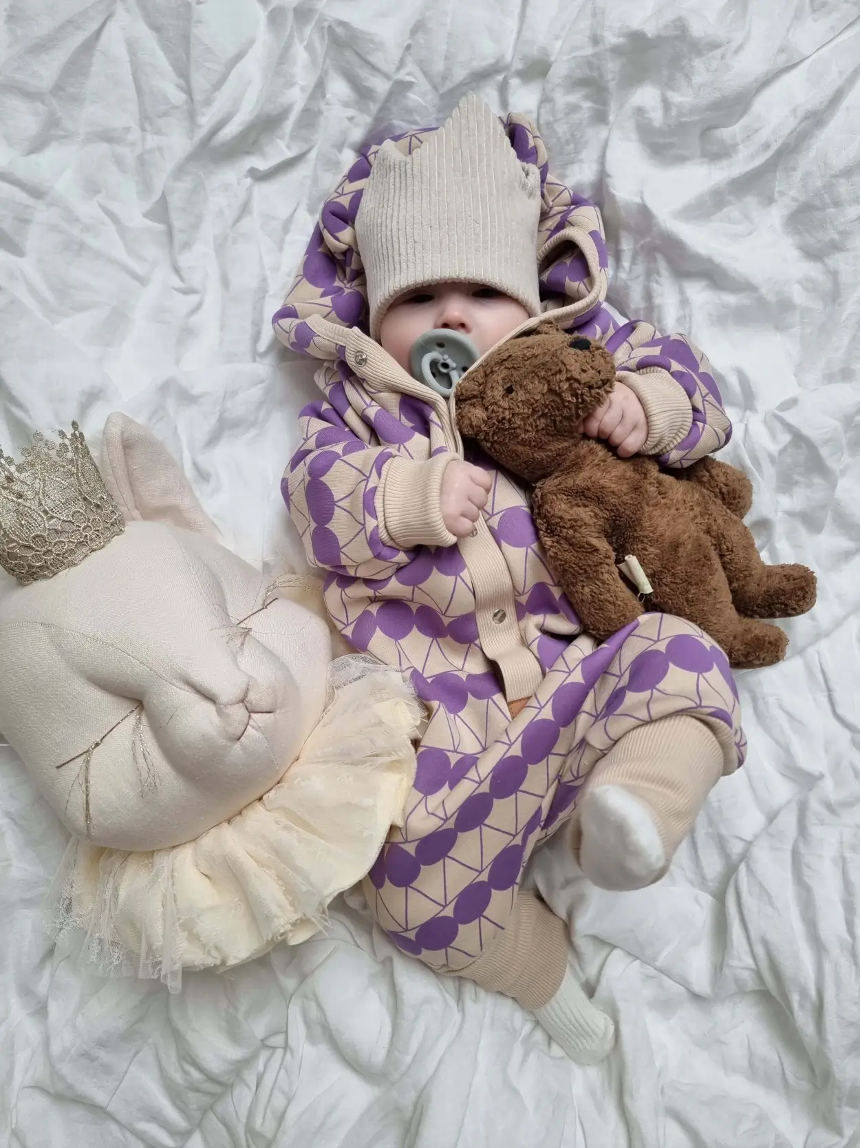 Uchaty kombinezon - Kropki Beż