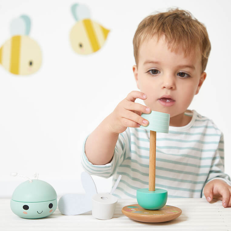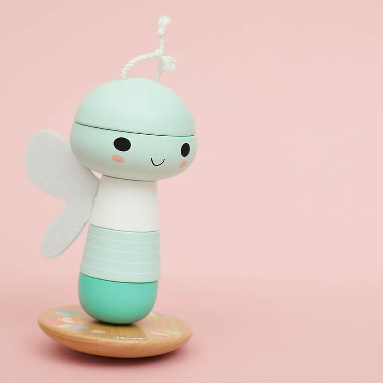 Układanka drewniana piramida Ważka z serii Pure francuskiej marki JANOD to kreatywna zabawka dla dzieci od 1. roku życia