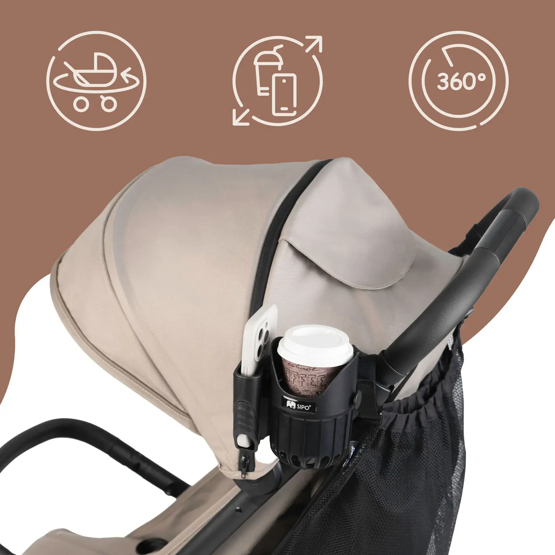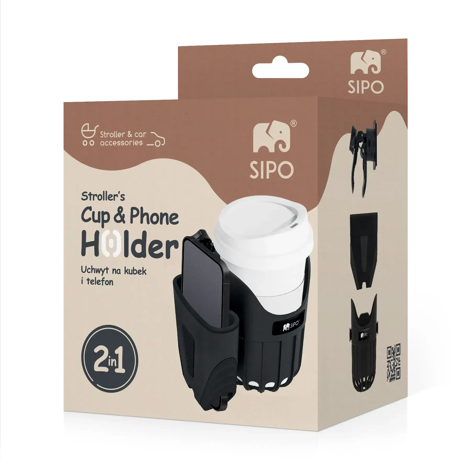 SIPO, uchwyt na kubek i telefon do wózka dziecięcego