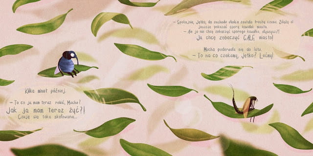 Jętka jeszcze nie wie, że ma czas tylko do zachodu słońca, bo jej życie kończy się o zmierzchu. Poznać Nowy Jork w jeden dzień to nie lada wyzwanie. Jętka, ciekawa świata i żądna wrażeń, nie waha się ani chwili. Jej przewodniczką jest Mucha, która zna miasto jak mało kto. Zaczynają więc szaleńczą podróż. Czy zdążą uścisnąć rękę prezydenta, zanim słońce schowa się za horyzont?