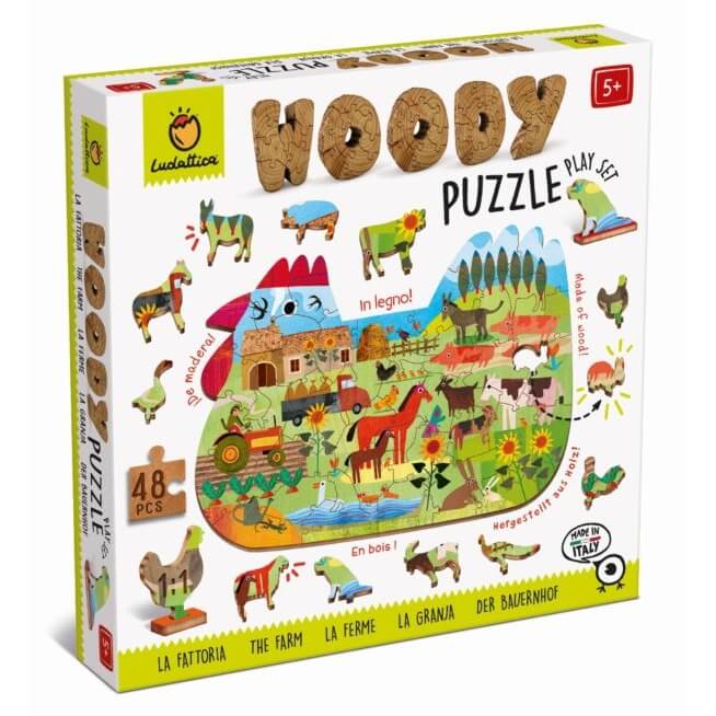 WOODY PUZZLE – drewniane puzzle konturowe – FARMA