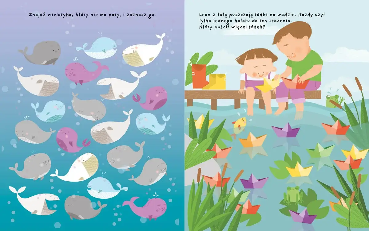 Z Wakacyjnym flamastrem czeka cię mnóstwo fantastycznej i rozwijającej zabawy. Znajdziesz tam między innymi: labirynty, zadania polegające na liczeniu i grupowaniu przedmiotów, a także łączenie cieni.
