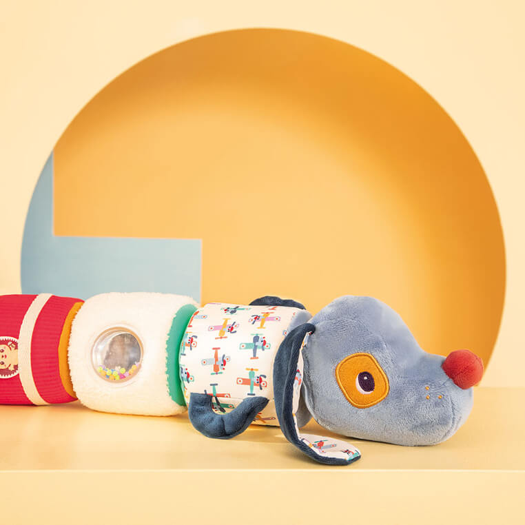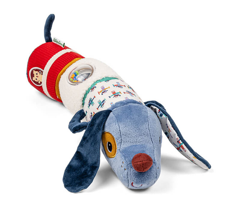 Wałek dźwiękowy z kolekcji Piesek Jules belgijskiej marki Lilliputiens to niebanalne, miękkie i wielofunkcyjne źródło rozrywki i nauki