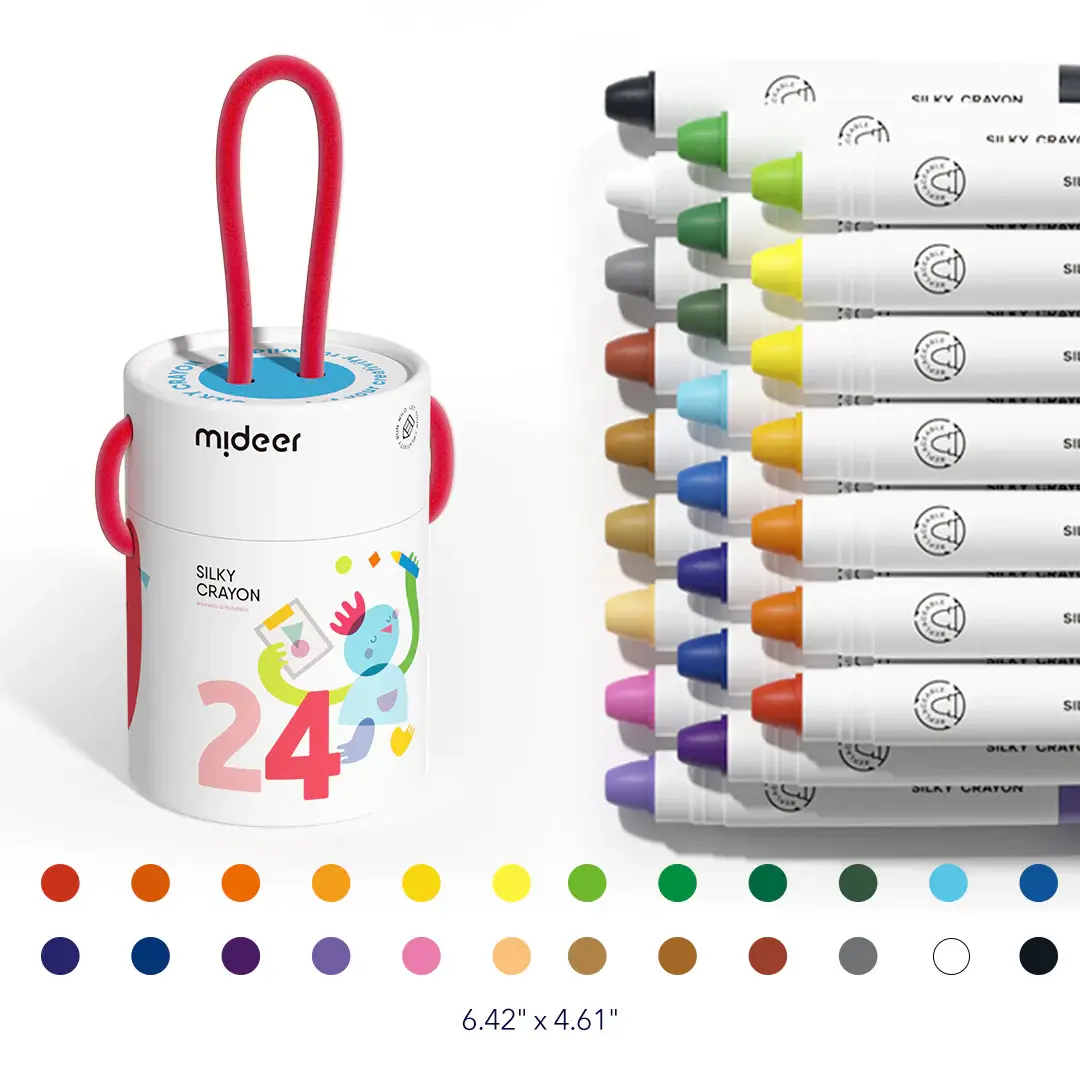 Dużo fajniej jest pomalować siebie, mamę, biurko i ścianę, prawda? Na szczęście dzieł można tworzyć nieskończenie wiele i to w tych samych miejscach, bo kredki są łatwo zmywalne. Dzięki miękkim rysikom nie zarysowują powierzchni i ułatwiają malowanie, na przykład po twarzy. Wspólne rysowanie pokazuje dziecku, że jesteśmy ciekawi tego, co je właśnie interesuje. To też bardzo dobry sposób na docenianie talentów nawet najmłodszych artystów wychodzących poza utarte schematy. Więc idź i pomaluj swój świat na żółto i na niebiesko... albo na którykolwiek z 24 dostępnych kolorów!