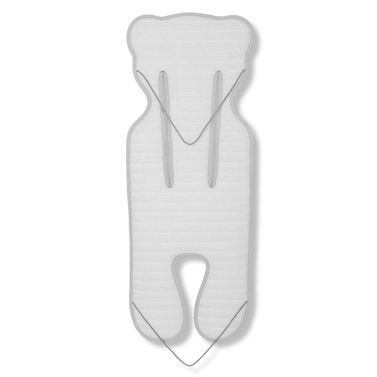 Wkładka antypotowa do wózka ma uniwersalny rozmiar i dostępna jest w 5 wersjach kolorystycznych. W porównaniu do wersji przeznaczonej do fotelika, jest większa, co sprawia, że idealnie dopasowuje się do większości modeli spacerówek i wózków dziecięcych. Z tyłu wkładki znajdują się elastyczne gumki, które można przełożyć przez oparcie wózka oraz w miejscu gdzie dziecko trzyma nóżki dzięki czemu wkładka pozostaje na swoim miejscu nawet podczas intensywnych ruchów dziecka.