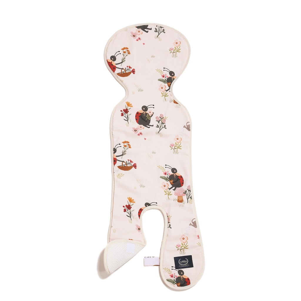 Ten niepozorny kawałek miękkiego materiału pozwoli ograniczyć nadmierne pocenie się dziecka i zapewni odpowiednią cyrkulację powietrza. Wierzch wkładki to przyjazny dla najbardziej wrażliwej skóry bambus, z kolei spód wykonany jest z miękkiej, oddychającej siatki która, dzięki swojej budowie 3D jest miękka, nie odkształca się i zapewnia doskonałą amortyzację. Wkładka sprawdzi się idealnie podczas upałów. Dzięki niesamowitym właściwościom bambusa, wkładka nie nagrzeje się, dzięki czemu unikniemy oparzeń maluszka. Dodatkowo bambus ma właściwości antybakteryjne, antygrzybiczne i antyalergiczne, co przy delikatnej skórze dziecka ma ogromne znaczenie. Wkładka mimo swojej funkcjonalności jest cienka, a jej oryginalny kształt został zaprojektowany, tak aby w pełni dopasował się do ciała dziecka. Dodatkowo, od spodu wkładka posiada specjalną zapinkę na rzep dzięki czemu część przeznaczana na nóżki dziecka nie będzie się przemieszczać.