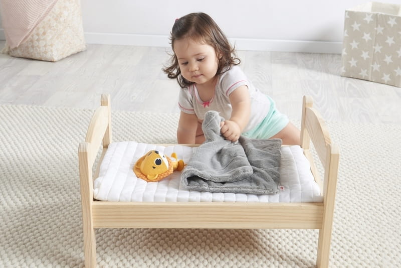 Dziecko uczy się w ten sposób m.in. cierpliwości, a także tego, jak opiekować się innymi (będzie nakrywało zabawkę kołderką, nuciło jej kołysankę, głaskało). Rodzic może wskazywać maluchowi, gdy nadchodzi czas drzemki czy spania. Z takim przyjacielem, dziecko z pewnością będzie bardziej skłonne do wykonania tej czynności.