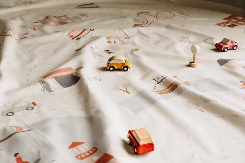 - Dwustronny Design: Jedna strona zachwyca uroczym motywem, druga zaś oferuje powtarzalny, estetyczny wzór, stymulujący wyobraźnię dziecka i pasujący do każdego wnętrza.