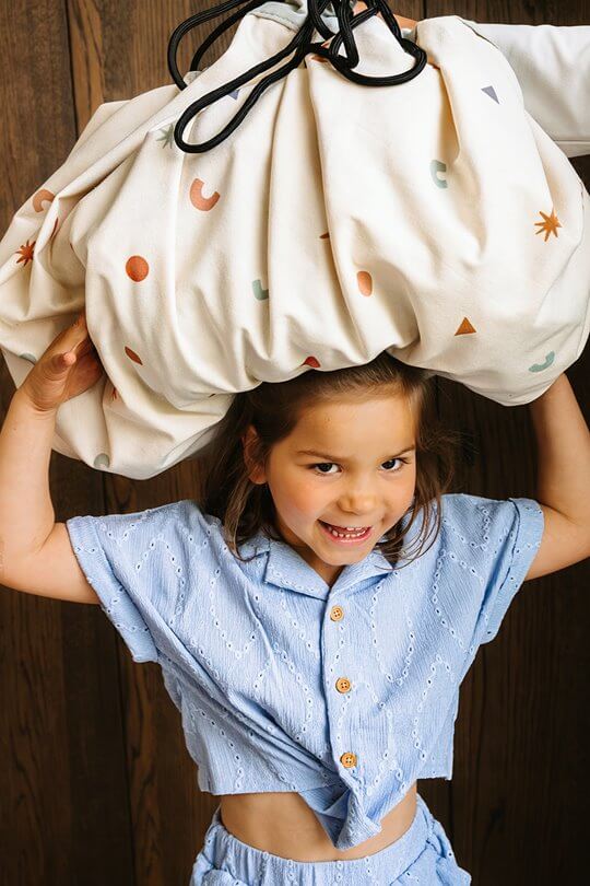 Twoje dziecko zyska przestronne, dwustronne centrum zabawy, a Ty - niezastąpioną pomoc w codziennym sprzątaniu. Koniec z rozrzuconymi klockami, autkami czy pluszakami! Po zakończeniu przygód wystarczy pociągnąć za sznurki, by w kilka sekund uporządkować cały bałagan.