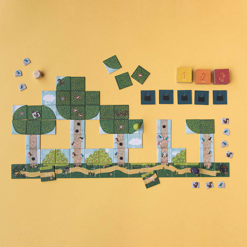 Cel Gry: Pracujcie razem, aby zbudować razem z wróżką las, w którym każde drzewo ma taką samą liczbę domków dla wiewiórek i dla ptaszków, zanim czarodziej rzuci 7 zaklęć lub umieści w klatce 12 zwierzątek.