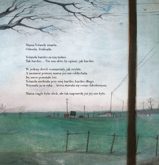 Poetycki tekst Pimma van Hesta, podchodzący do trudnego tematu z ogromną wrażliwością, uzupełniają nastrojowe ilustracje Sassafras de Bruyn . Książeczka ułatwi zarówno rozmowę z dzieckiem o śmierci bliskiej osoby, jak i oswojenie z koncepcją śmierci; choć mamy Yolandy już nie ma, jakaś jej część zawsze pozostanie w tym, co po sobie pozostawiła i w pamięci tych, którzy mieli szczęście ją poznać.