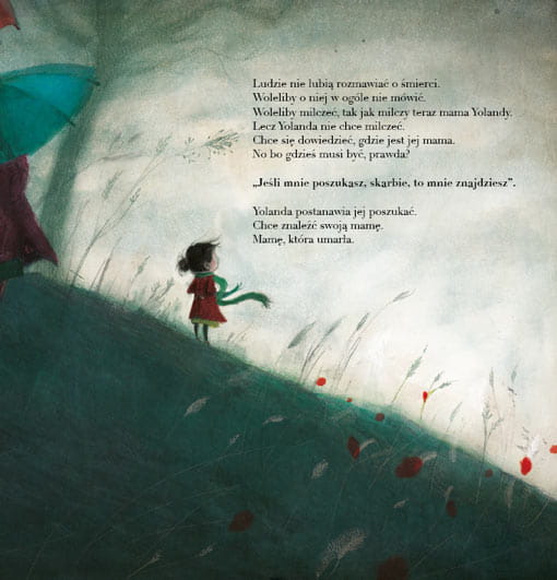 Dorośli nie chcą o tym rozmawiać. Każdy przeżywa stratę na swój sposób. Yolandzie jednak to nie daje spokoju. Mama odeszła – ale dokąd? Nie mogąc zrozumieć do końca, co właśnie się stało, postanawia sama jej poszukać.