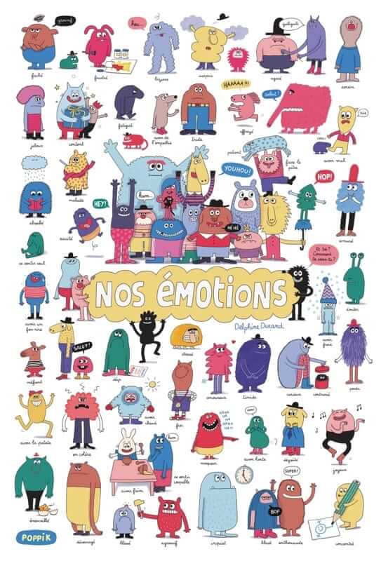 Dzięki temu plakatowi dzieci odkryją szeroki wachlarz emocji: złość, radość, cierpliwość, nieśmiałość, zmartwienie, przedstawionych pod postaciami zabawnych stworków.