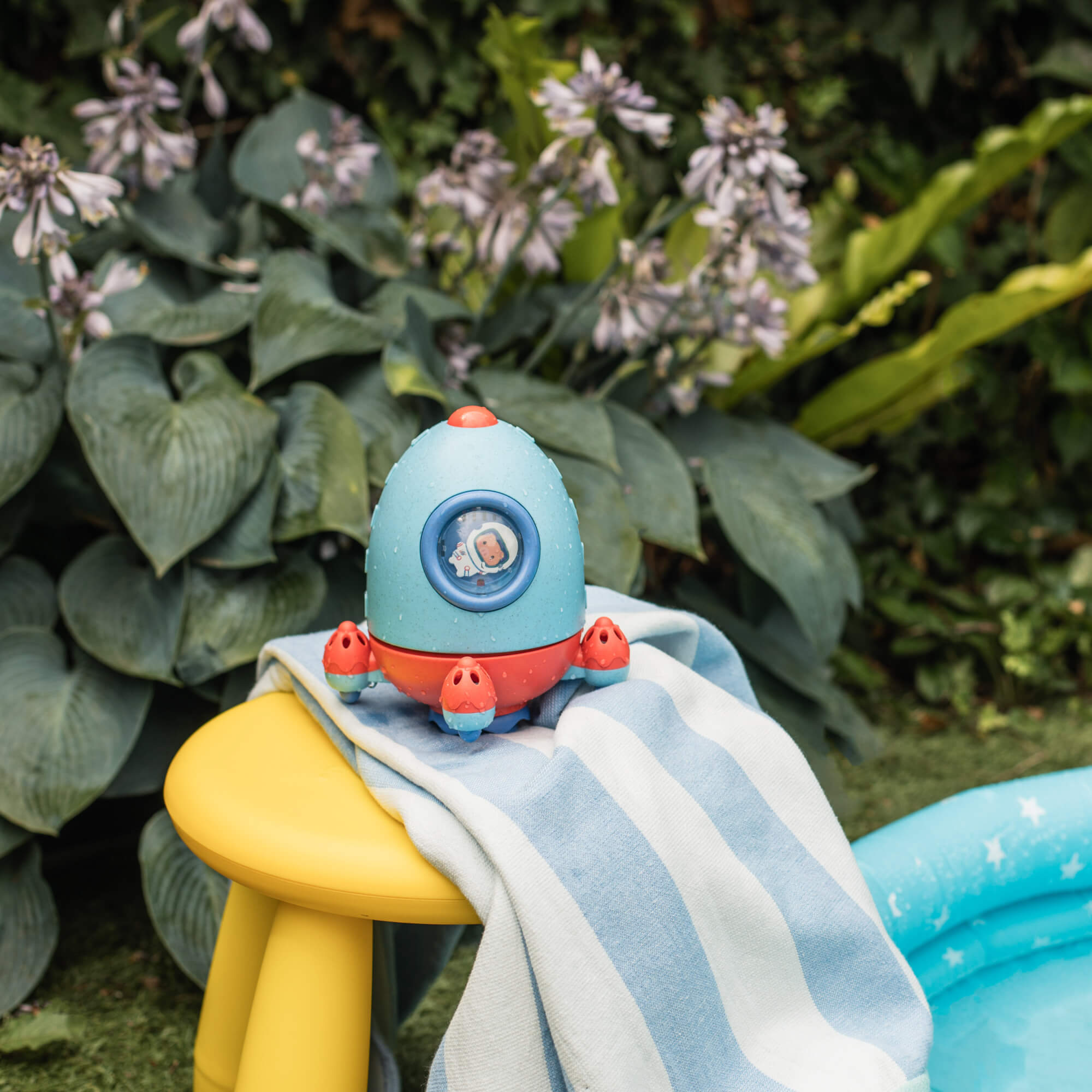 Ta pływająca i wirująca rakieta do kąpieli zapewnia wciągające, interaktywne podróże wodne dla małych odkrywców podczas kąpieli! Dzieci pokochają efekty wodne – wystarczy zanurzyć rakietę pod wodą, aby ją napełnić, i cieszyć się kaskadą wody, gdy dysze wirują, tworząc zabawny kształt kopuły. Świetny sposób na wprowadzenie zabawy sensorycznej do kąpieli. Rakieta Kosmiczna zachęca dzieci do zmoczenia włosków i oswajania się z uczuciem wody lejącej się po ich głowach. Ten produkt jest częścią serii ECO, stworzonej z bioplastiku.