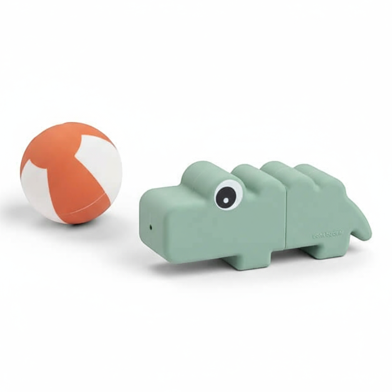 Krokodyl przychodzi w zestawie z piłeczką aby było mu wesoło podczas zabawy w wannie.