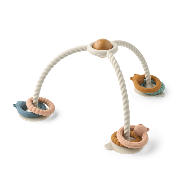 Dzięki przyssawkom możesz przymocować zabawkę SOREN do powierzchni – to idealny sposób na zajęcie małych, ciekawskich rączek. Pozwól dziecku odkrywać różne tekstury i kształty, przesuwając silikonowe pierścienie w górę i w dół – środkowa część wydaje przy tym delikatny dźwięk grzechotki.