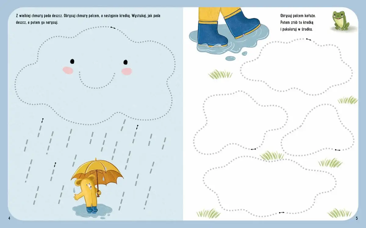Kreatywny zeszyt dla najmłodszych, który ćwiczy gotowość do nauki pisania. Zeszyt zawiera rozgrzewkę rozwijającą motorykę małą i dużą oraz ćwiczenia wspierające pracę rąk.