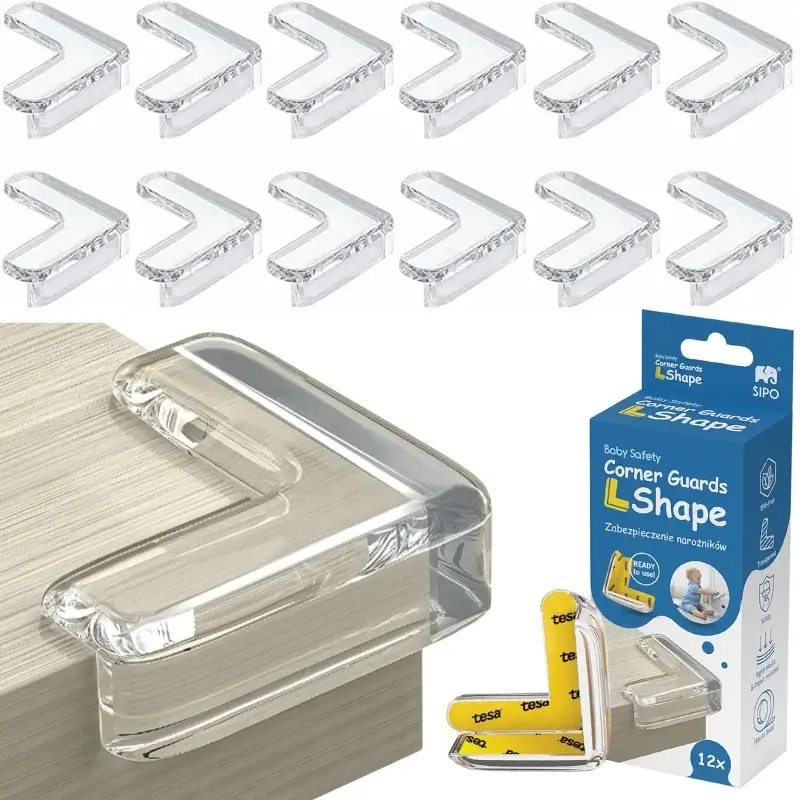 SIPO Silikonowe zabezpieczenia narożników mebli to produkt służący do ochrony dzieci przed uderzeniami w ostre i twardości narożników mebli. Są wykonane z miękkiego, elastycznego silikonu, który absorbuje siłę uderzenia, zmniejszając ryzyko obrażeń.