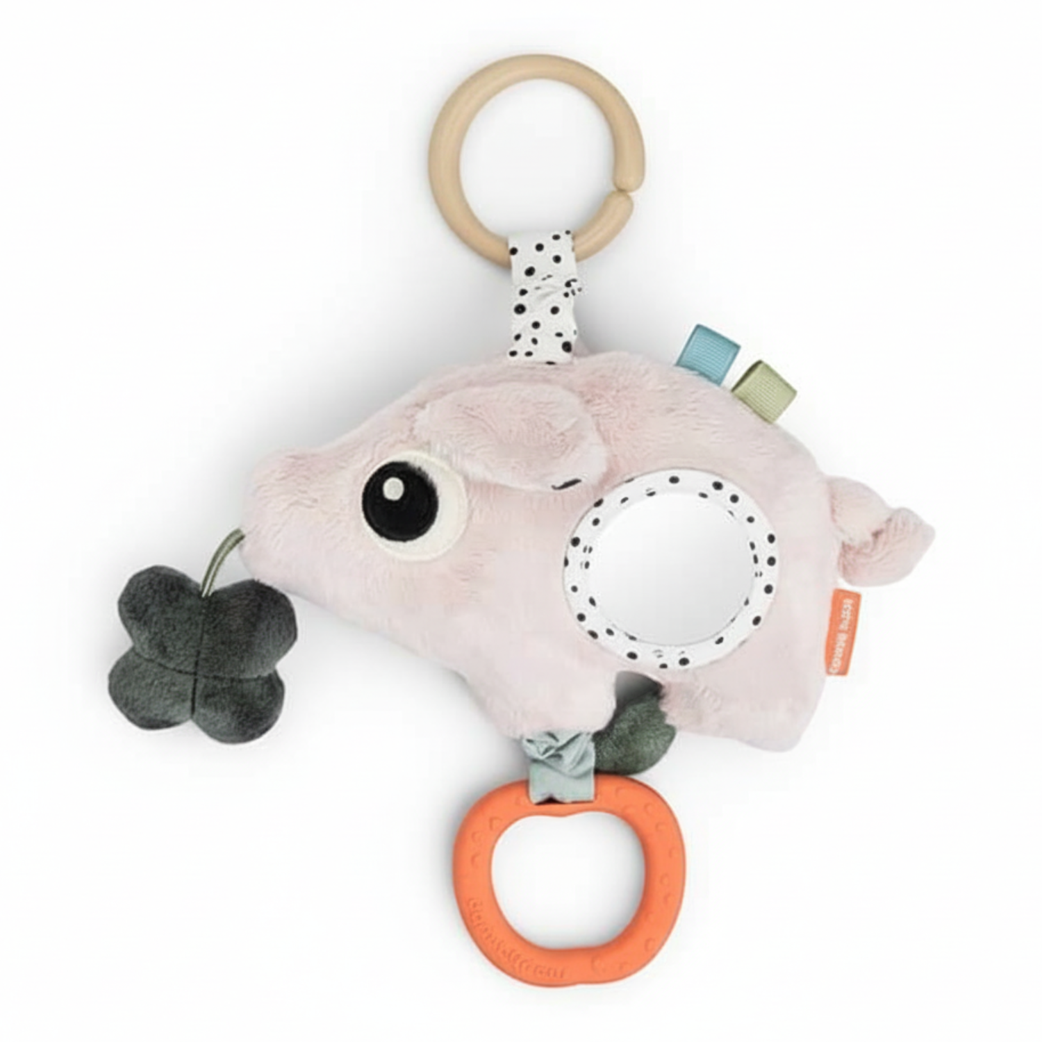 Wykonany z silikonu spożywczego gryzak zapewnia kojącą ulgę swędzącym dziąsłom. Kontrastujące kolory i zabawne detale zapewniają stymulację wzrokową, a całą świnkę Pigee można łatwo przymocować za pomocą okrągłej zawieszki. Idealny towarzysz pierwszych zabaw Twojego dziecka.