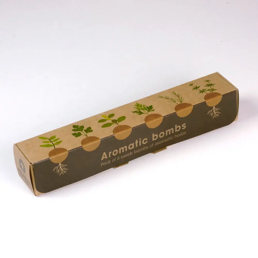 - Zawartość: 6 bomb nasiennych (Bazylia, Kolendra, Oregano, Pietruszka, Rozmaryn, Tymianek).