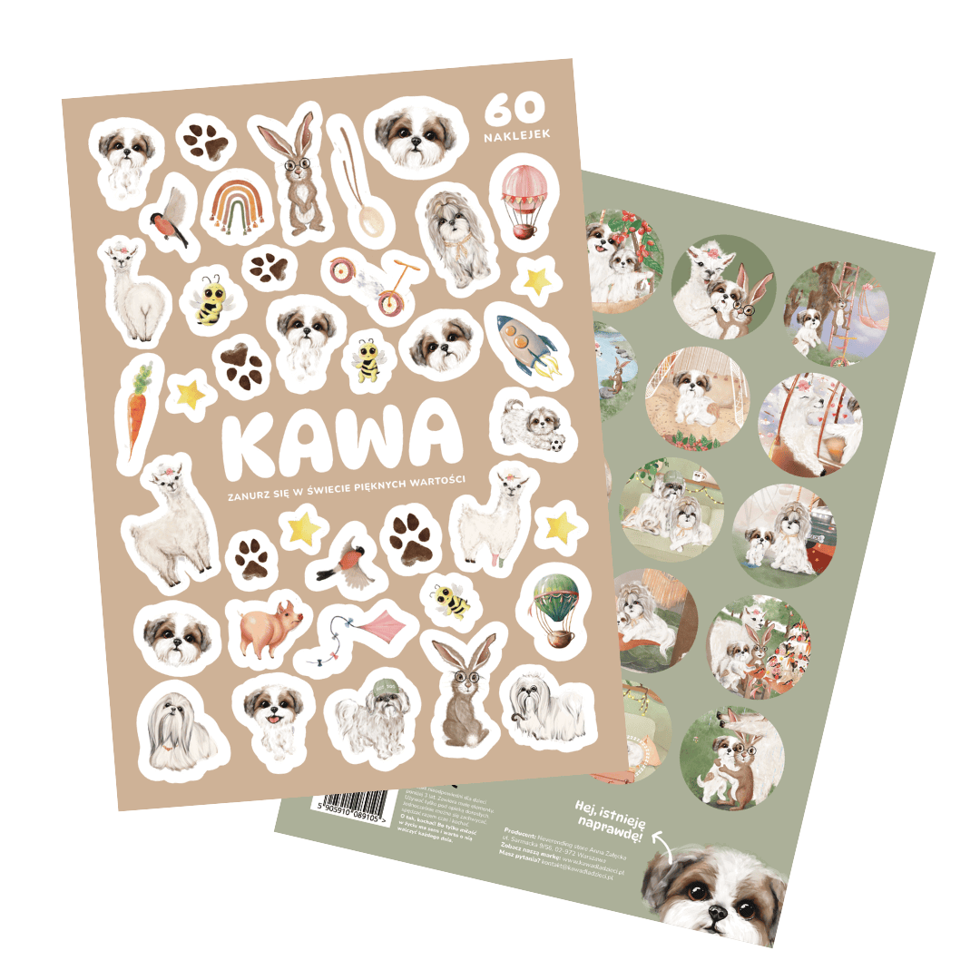 Dzięki przepięknym rysunkom Magdy Pakiet powstał zestaw 2 rodzajów naklejek. Zapewniają rodzicom kilka lub kilkanaście minut ciszy, oddechu i możliwość wypicia ciepłej kawy. Dzieci, obcując z tymi naklejkami, przenoszą się na moment do Krainy domków na drzewie. Naklejki sprawdzają się w domu, u lekarza czy w podróży.