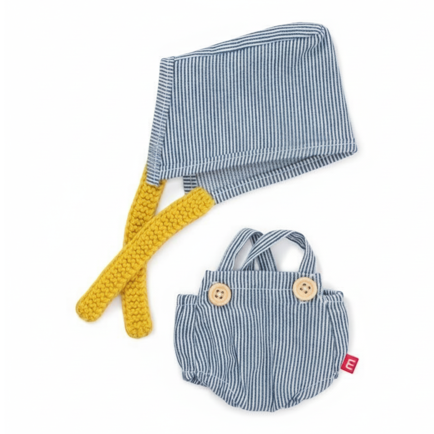 Zestaw składa się z ogrodniczek i bonetki.