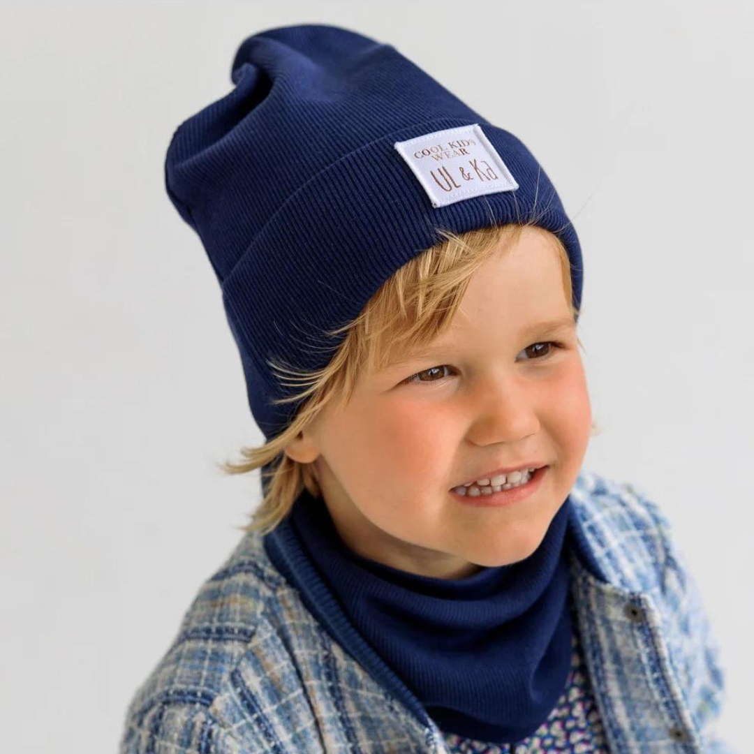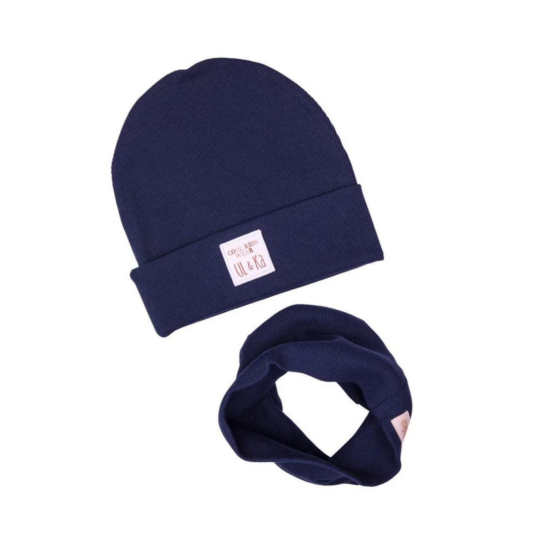 Czapka i komin uszyte są z bawełny z dodatkiem elastanu dzięki czemu są rozciągliwe i bardzo wygodne nawet dla niemowlaków.