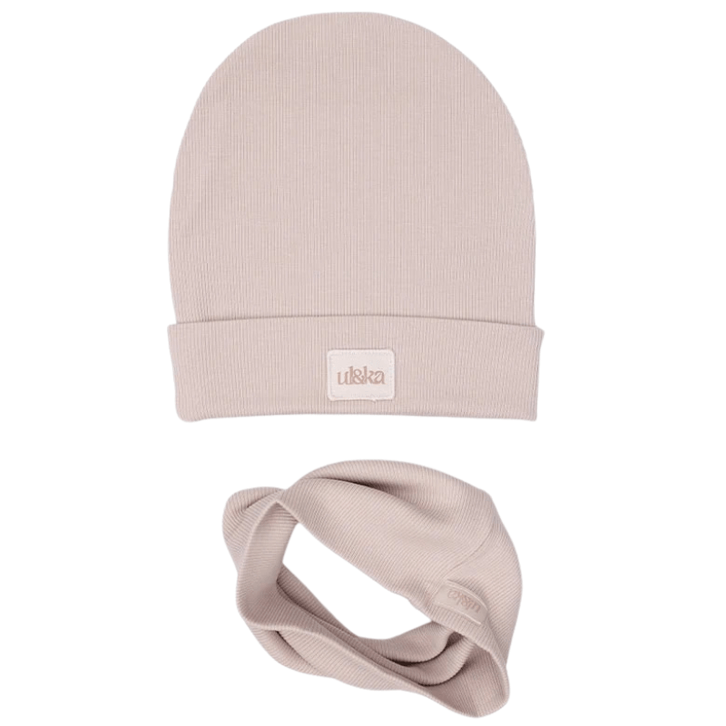 Czapka i komin uszyte są z bawełny z dodatkiem elastanu dzięki czemu są rozciągliwe i bardzo wygodne nawet dla niemowlaków.