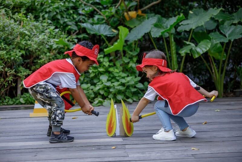 Ten zestaw zabawowy zaprasza dzieci do poznawania codziennych obowiązków prawdziwego strażaka. Zajmij się sytuacjami kryzysowymi w pobliżu i odkryj, jak to jest być prawdziwym strażakiem! W zestawie znajduje się regulowany hełm i kurtka, megafon, gaśnica, wąż wodny, latarka, siekiera i krótkofalówka.