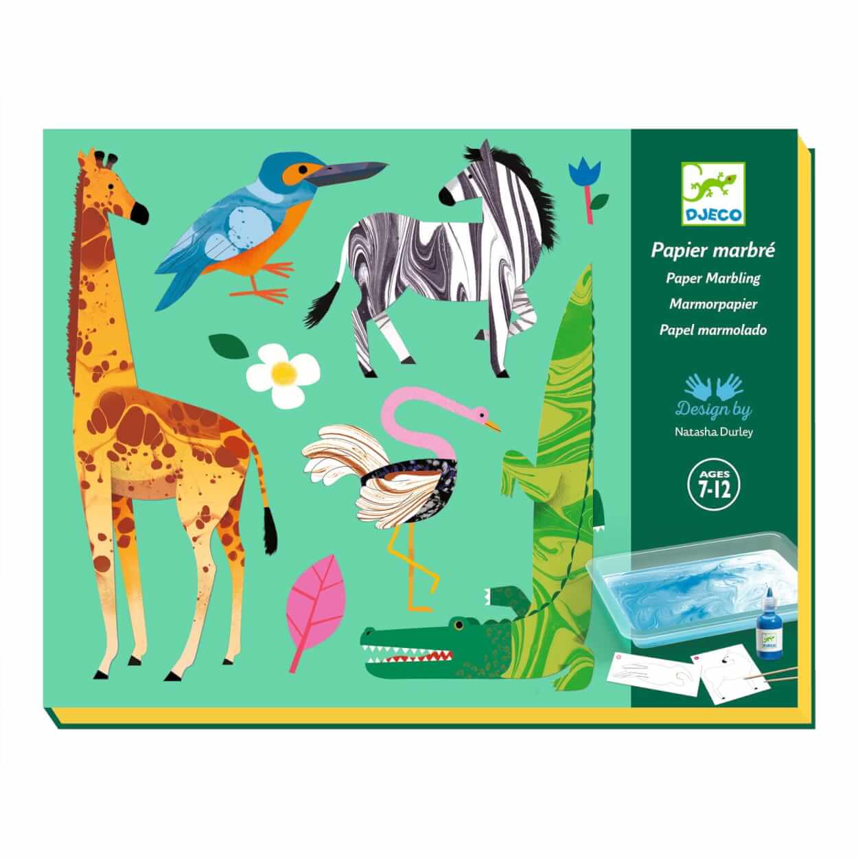 Wlewa atramenty kropla po kropli, a następnie miesza je: kolory przeplatają się bez rozmycia. Umieszcza naklejki na powierzchni wody w plastikowym pojemniku, aby przenieść wzory na papier. Utworzone wzory są przenoszone na papier jak za dotknięciem czarodziejskiej różdżki!