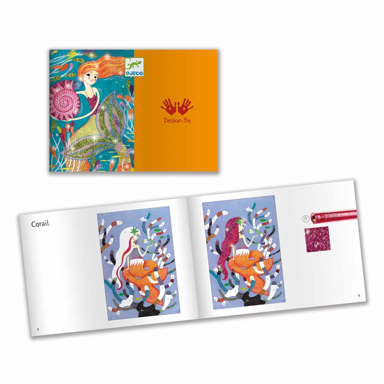 Za pomocą plastikowego rylca dziecko odkleja poszczególne kawałki papieru , posypując odpowiednim kolorem brokatu. Nadmiar brokatu strzepuje się dołączonym do zestawu pędzelkiem.