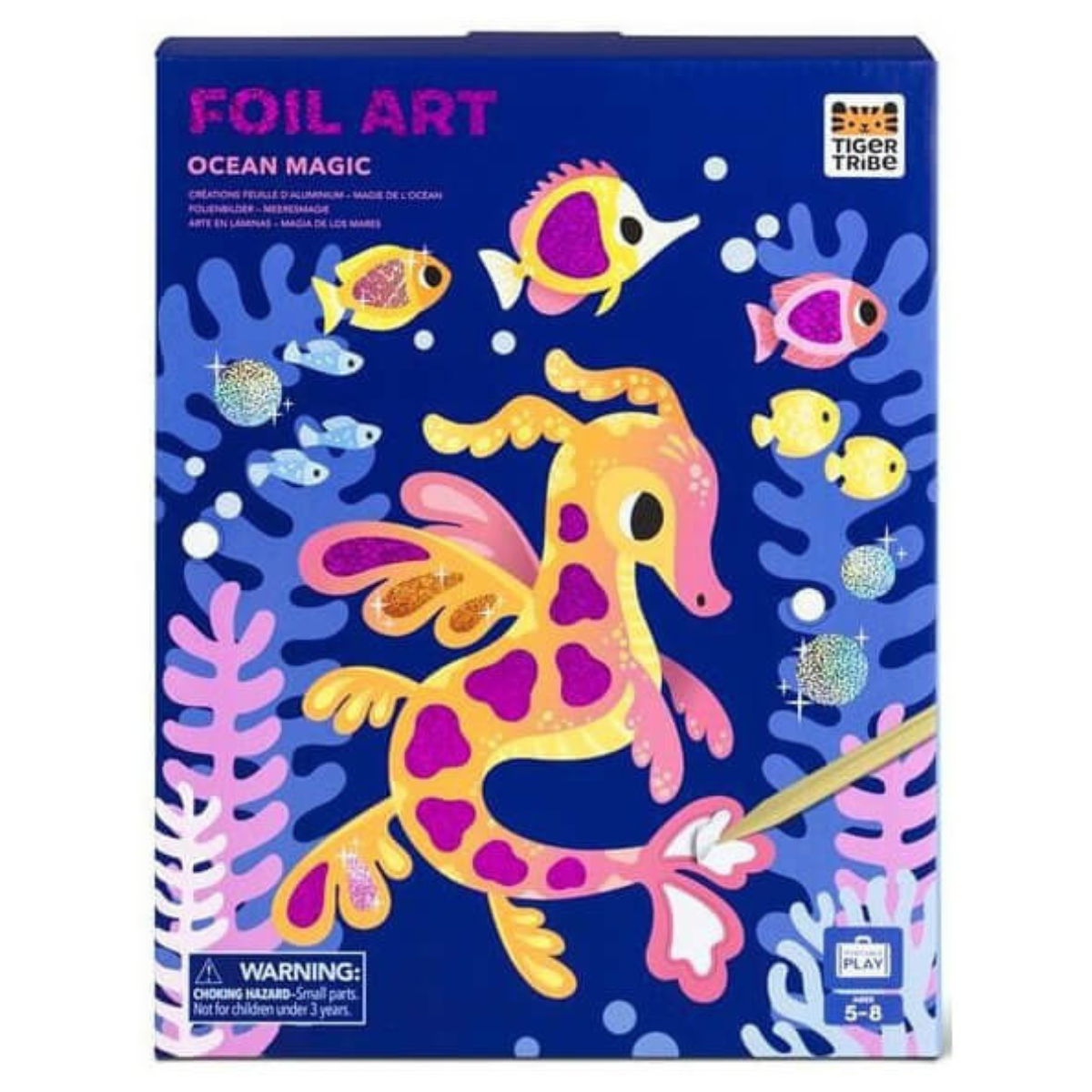 Zestaw „Magiczny Ocean” zaprasza dzieci do zanurzenia się w kreatywny świat podwodnych przygód, gdzie syrenki, koniki morskie i narwale tylko czekają, by zabłysnąć kolorami. To wyjątkowy sposób na rozwijanie twórczego myślenia i zdolności artystycznych poprzez zabawę z folią holograficzną, która nada każdemu obrazkowi magiczny wygląd. Twoje dziecko z dumą zawiesi lśniące dzieła sztuki na ścianie swojego pokoju!