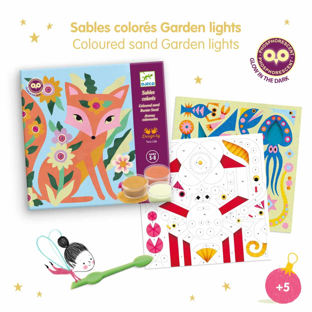 Klasyczna forma ozdabiania wizerunków: lisa, kota motyla i sowy zapewni mnóstwo wciągającej, kreatywnej zabawy. Za pomocą dostarczonych narzędzi dziecko stworzy zaczarowany, pełen niespodzianek świat, które będą świecić w ciemności. Każdego dnia w Paryżu zespół projektantów oraz ilustratorów pracuje, tworząc wyjątkowe przedmioty, które wzbogacają dziecięcą wyobraźnię poprzez zabawę.