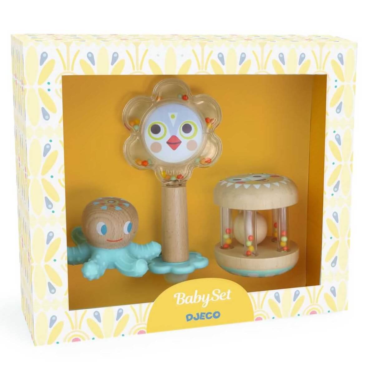Zestaw dla malucha - 2 grzechotki i gryzak 3m+