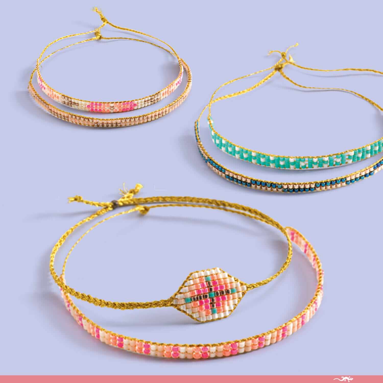 Zestaw do wykonania pięknych bransoletek z drobnych mikro-perełek na mini krośnie.