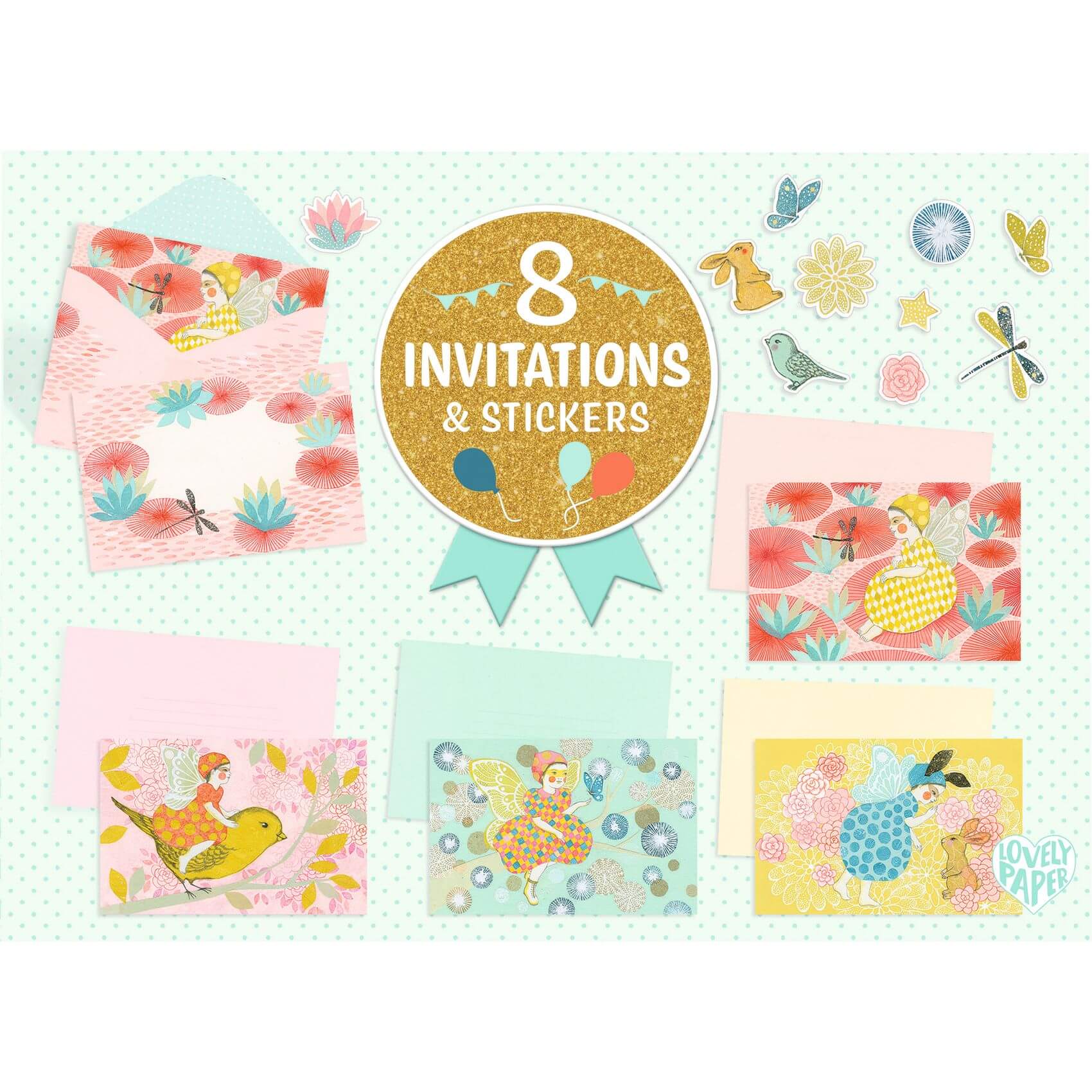 Zawiera 8 ilustrowanych kartek z miejscem do wpisania danych (4 wzory po 2 z każdego), 8 kopert (4 wzory po 2 z każdego), 2 arkusze naklejek do tworzenia spersonalizowanych wiadomości. Połączenie efektu metalicznego z matowym drukiem podkreśla różne wzory oraz dodaje oryginalnego i eleganckiego akcentu. Wysokiej jakości papier gwarantuje piękne wykończenie unikatowych zaproszeń.