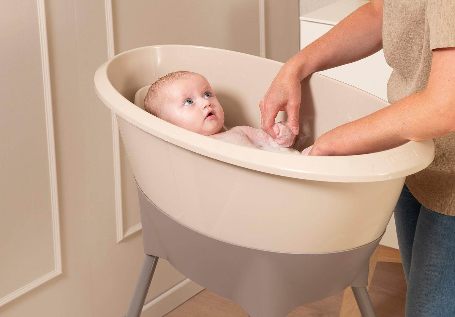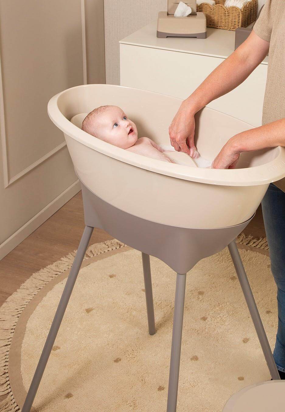 Nowoczesna konstrukcja wanienki - stojak gwarantuje dodatkowy komfort podczas kąpieli, a akcesoria dodatkowe są nieodzownym elementem wyprawki.