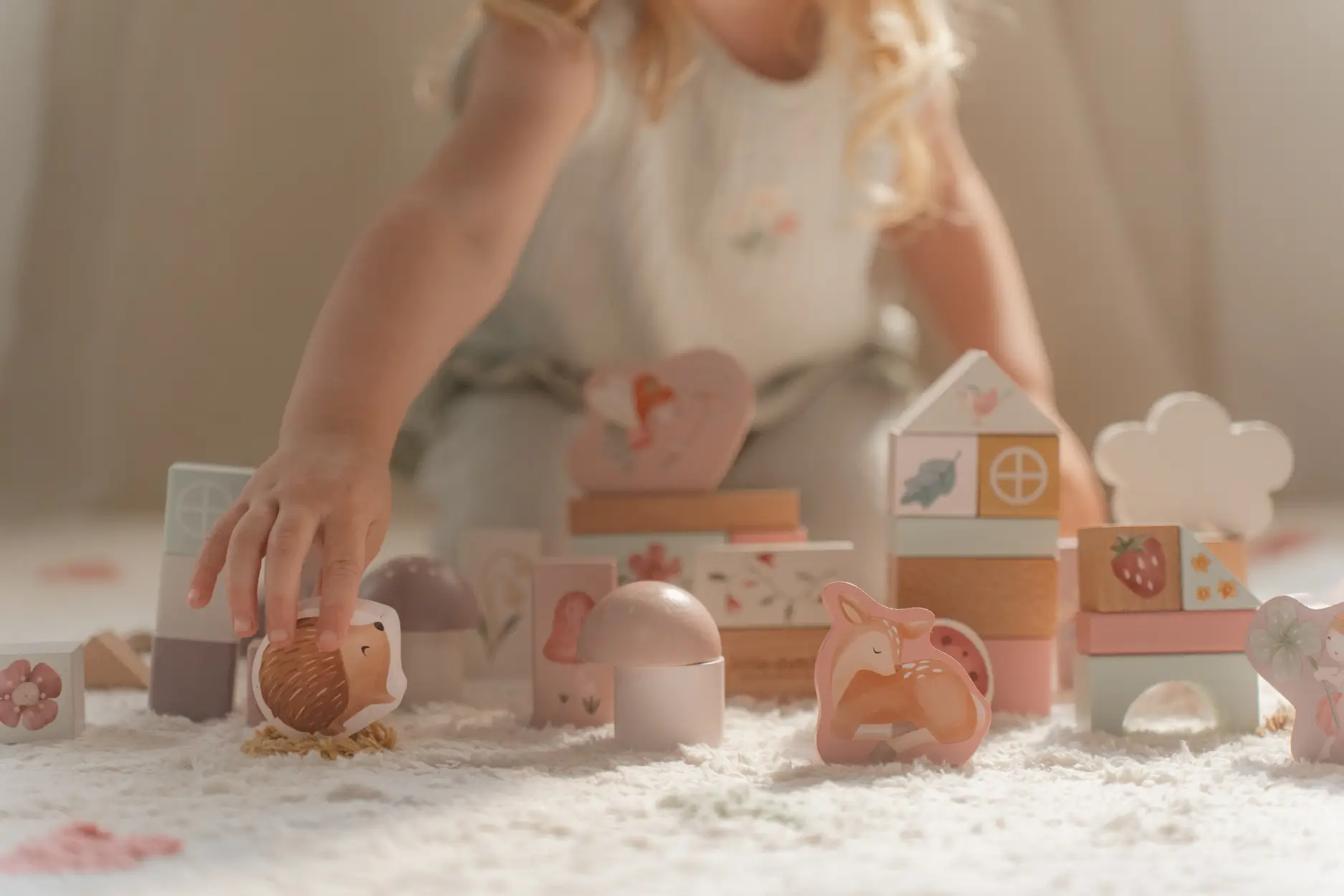 Komplet składa się z 50 drewnianych klocków w różnych kształtach i rozmiarach, ozdobionych motywem z kolekcji Fairy Garden - idealnych do zbudowania bajkowego ogrodu pełnego kwiatów, owadów i wróżek. Pięknie zapakowane w estetyczne opakowanie ułatwiające przechowywanie. Stanowi świetny pomysł na prezent i doskonałe uzupełnienie dla pozostałych zabawek z kolekcji Fairy Garden od Little Dutch.