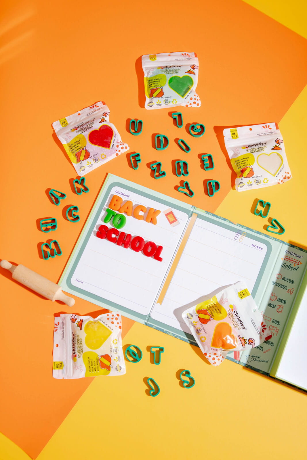 Zestaw kreatywny ALFABET, 100% naturalna ciastolina i akcesoria