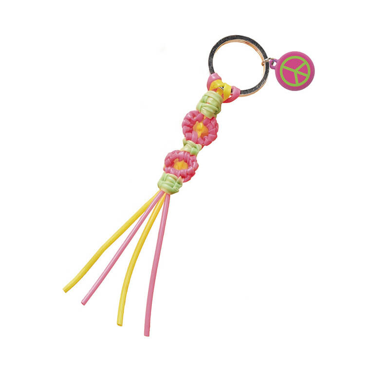 Pozwala stworzyć 8 różnych ozdób: breloczków, etui na długopis czy bransoletek. Zawiera 50 żyłek w różnych kolorach, 3 metalowe kółka do breloczków, 10 kółeczek jubilerskich, 28 zawieszek i 1 koralik w kształcie gwiazdki. Sznurki można pleść wg wzorów, zamieszczonych w dołączonej instrukcji, tworząc oryginalne kolorowe przestrzenne dekoracje. Technika ta to dla dziecka długie godziny angażującej i jednocześnie uspokajającej zabawy, a gotowe dzieła mogą jeszcze długo służyć lub stać się podarunkami dla bliskich.