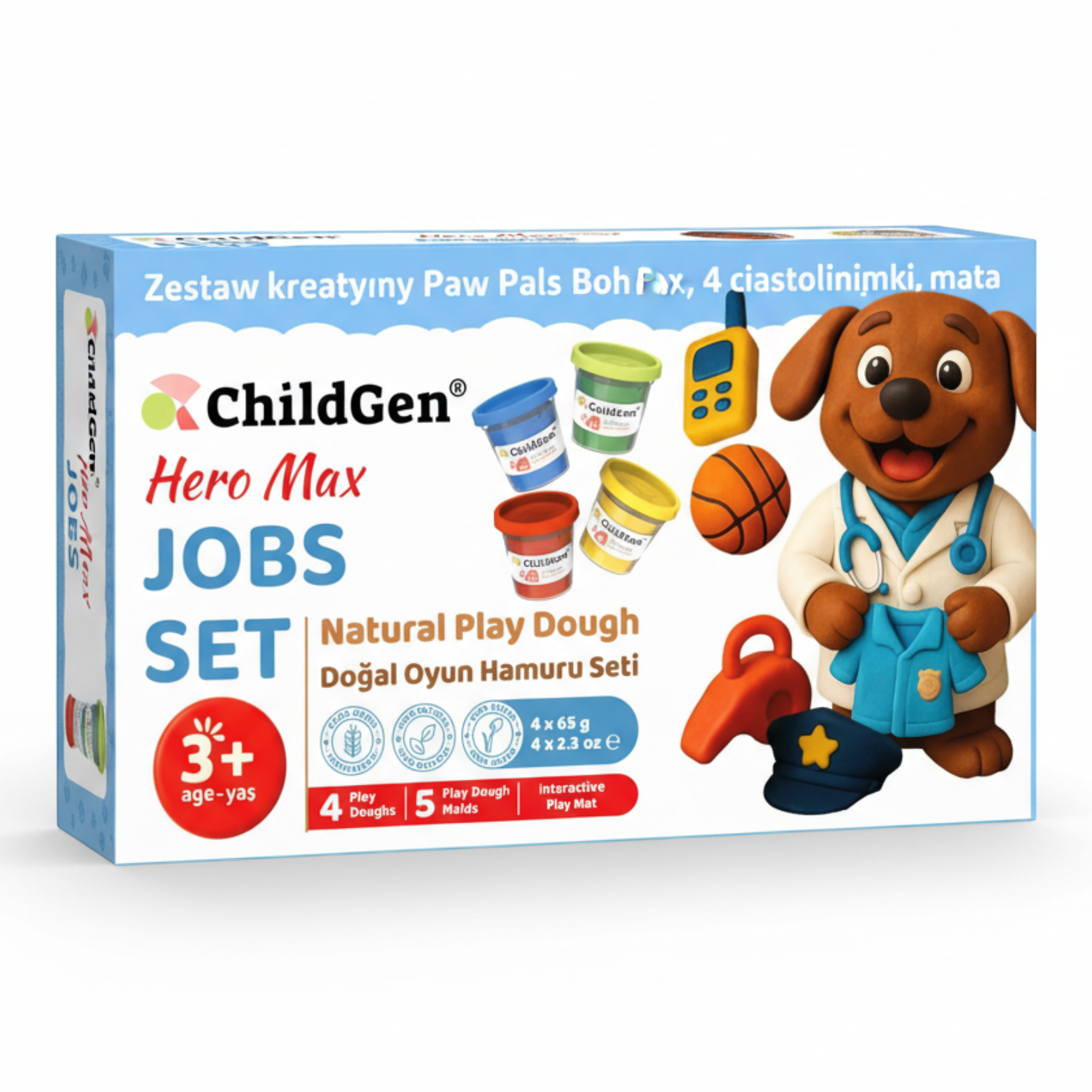Kim dziś będzie Max? Policjantem, lekarzem, strażakiem, a może weterynarzem? ChildGen Paw Pals Bohater Max z kolekcji Jobs to kreatywny zestaw z naturalną ciastoliną, który przenosi dzieci w świat zawodów i codziennych bohaterów.