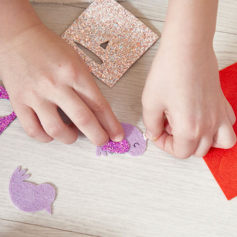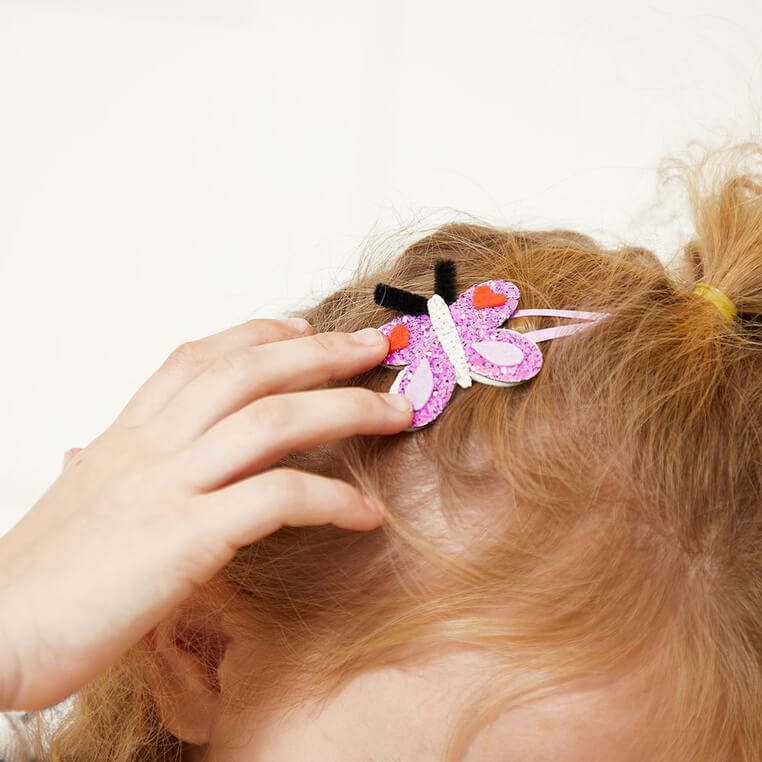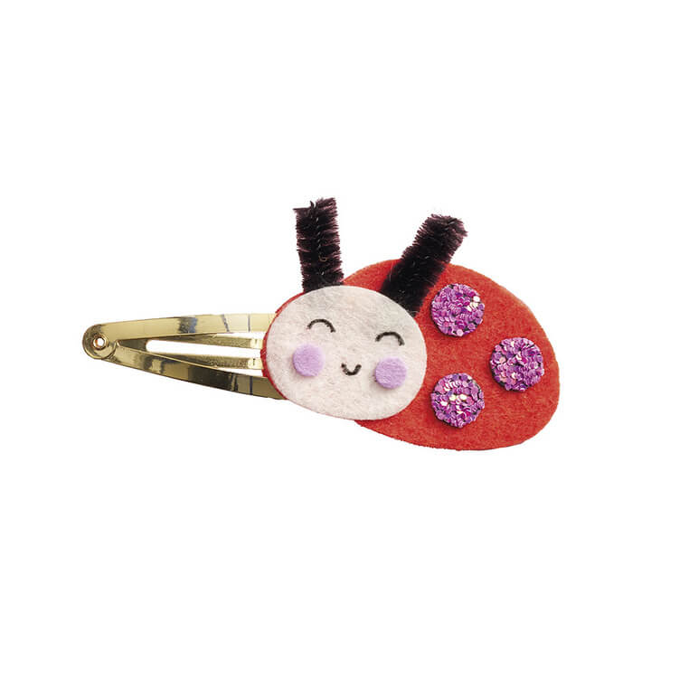 W jego skład wchodzi 6 metalowych spinek do włosów (złotych i różowych), 3 filcowe arkusze i 2 samoprzylepne brokatowe arkusze z wstępnie wyciętymi kształtami, 2 białe mini pompony (i 2 pianki do ich przyklejenia) oraz 4 szt. „czułek”. W kilka chwil Twoje dziecko może stać się kreatywnym jubilerem! Projektowanie i tworzenie biżuterii to godziny angażującej i jednocześnie uspokajającej, wyciszającej zabawy, a po skończonej pracy powstałe dzieła mogą jeszcze długo służyć jako ozdoby lub podarunki dla bliskich. Do zestawu dołączona jest szczegółowa instrukcja jak wykonać poszczególne ozdoby.
