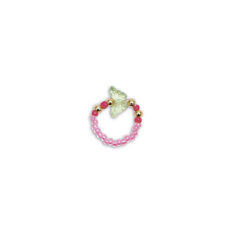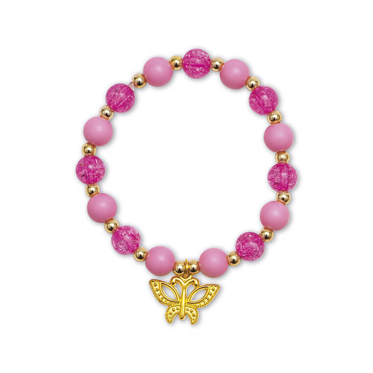 Pozwoli stworzyć w sumie aż 6 sztuk ozdób: naszyjnik, 3 bransoletki i 2 pierścionki. W jego skład wchodzi wiele koralików w różnych kształtach i kolorach (m.in. w kształcie motyli), a także jasnozielony sznurek, biała elastyczna nitka oraz 3 metalowe zawieszki-motyle.