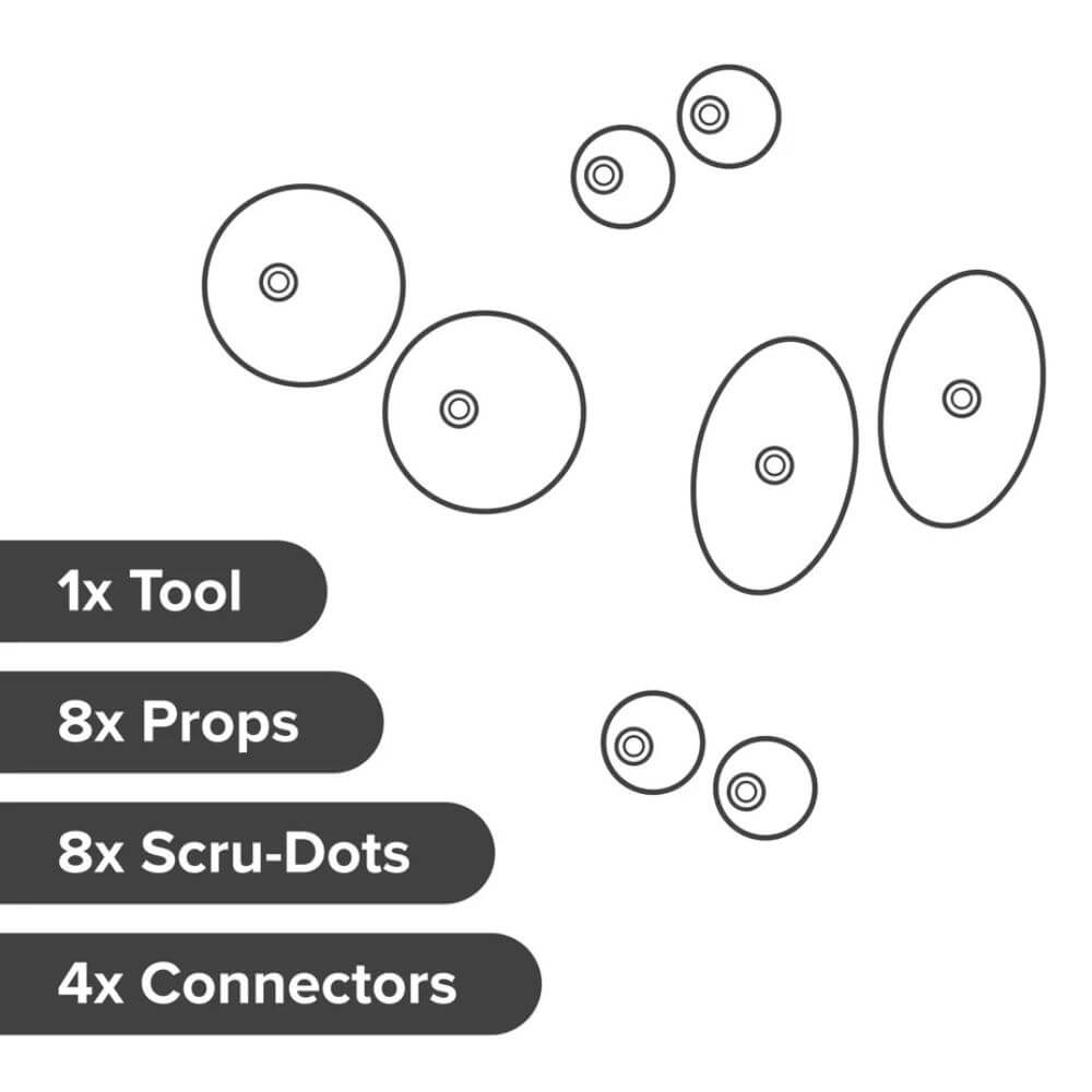Zestaw może być używany zarówno jako dodatek do większych zestawów narzędzi Makedo, jak i samodzielna jednostka konstrukcyjna - oprócz kreatywnych kształtów w komplecie znajdziemy śrubki oraz proste narzędzie do ich wkręcania.