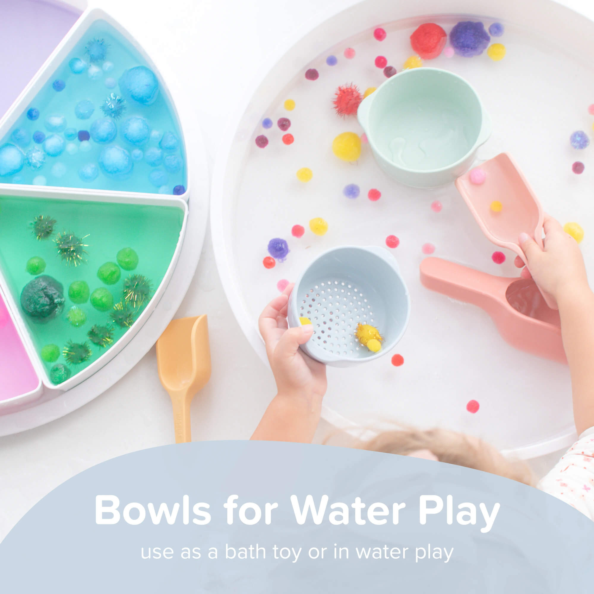 Dostępne w pięknych pastelowych i neutralnych odcieniach, miski doskonale uzupełniają zestawy akcesoriów PlayTRAY, zachęcając dzieci do eksplorowania sensorycznego świata. Wystarczy wypełnić je ulubionymi materiałami, aby stworzyć fascynującą przestrzeń do mieszania, przelewania czy nawet smakowania!