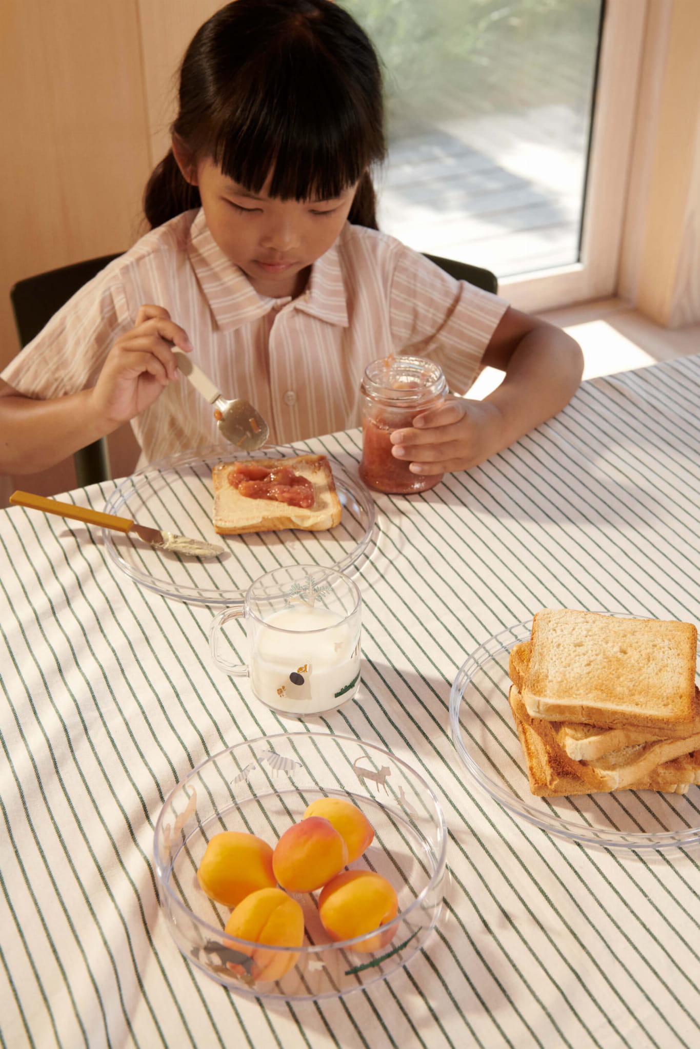 Zestaw naczyń z nadrukiem wykonany jest z tritanu o przypominającej szkło jakości, który jest bardzo trwały
