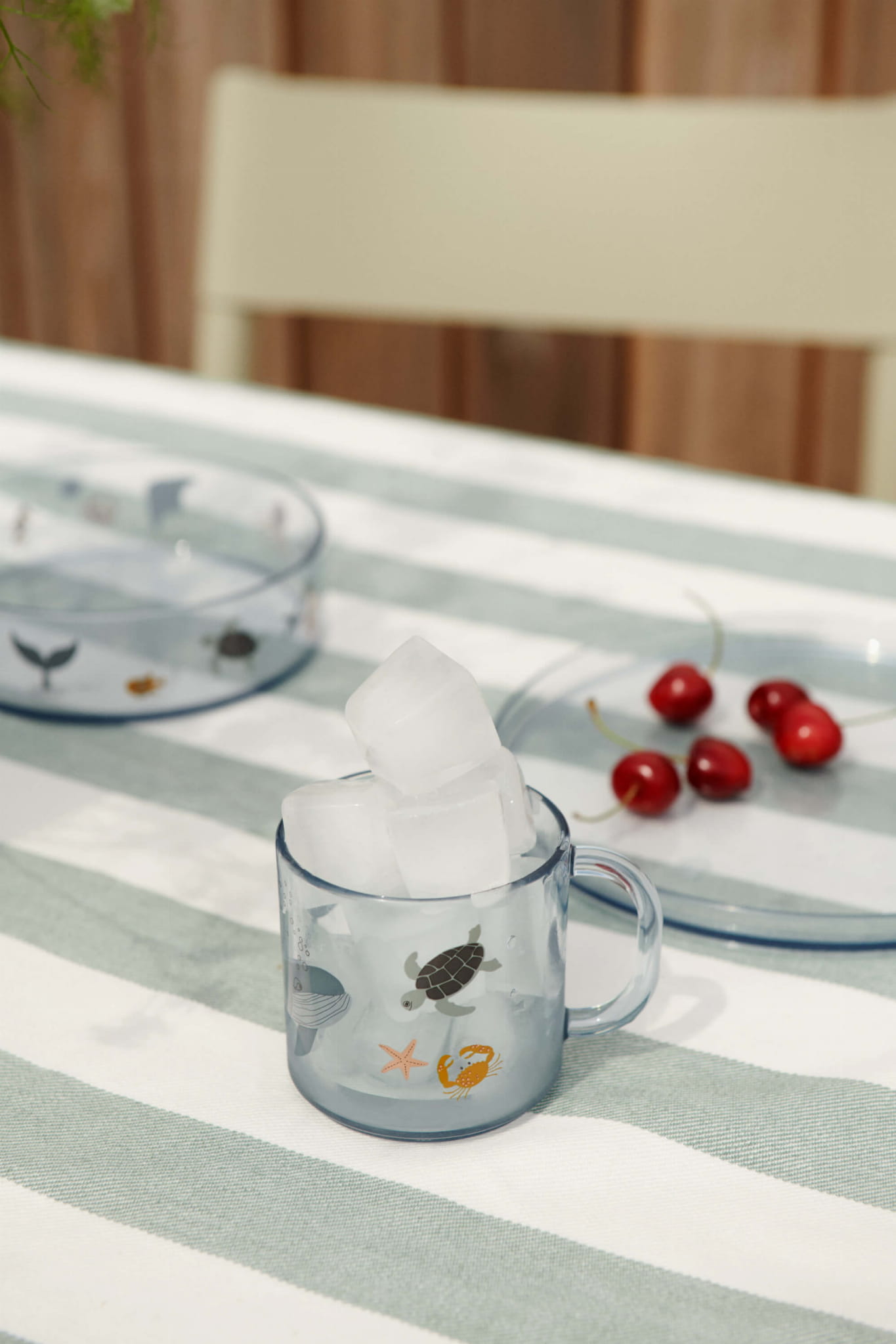 Zestaw naczyń z nadrukiem wykonany jest z tritanu o przypominającej szkło jakości, który jest bardzo trwały